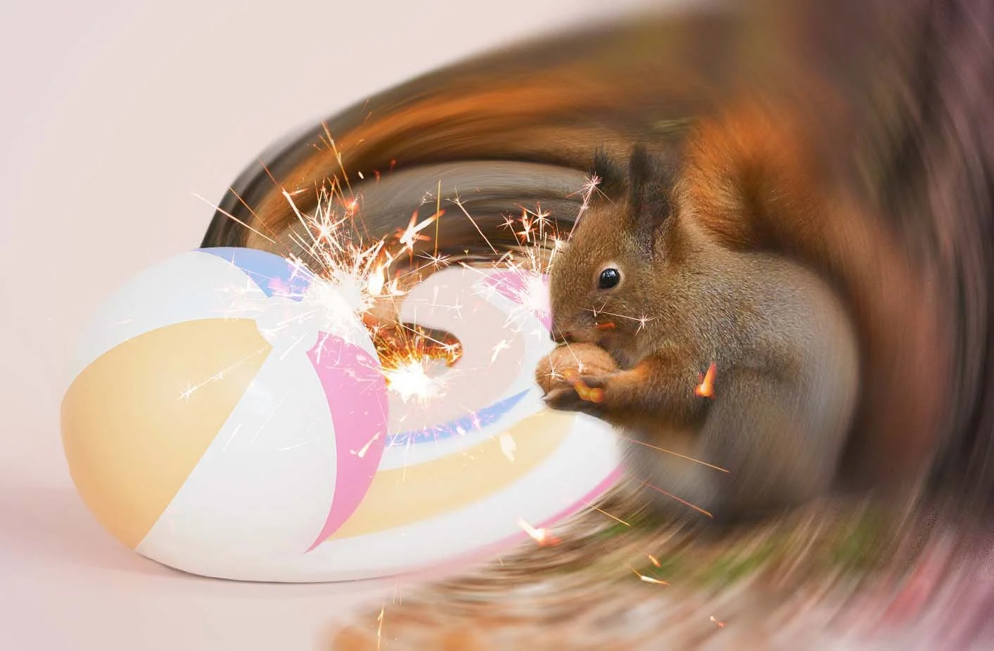 I push a ball and the ball turns into a squirrel.